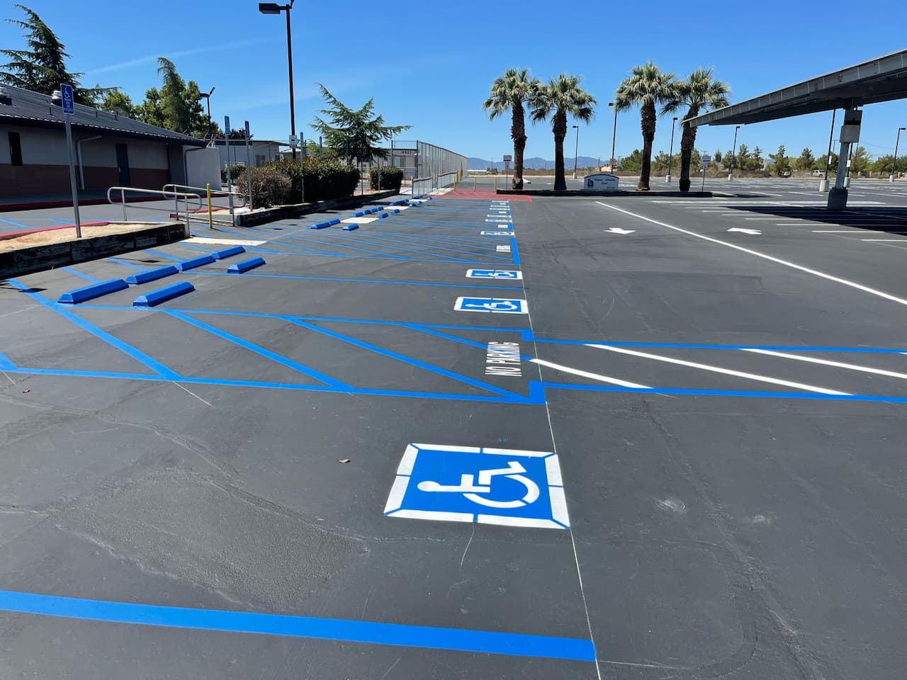 Parking Stall Striping, Curb Painting, Custom Stenciling, ADA Path of Travel, Compliant Signage and more…we take care of all traffic painting, signage and ADA upgrades (like ramps and handrails, too).